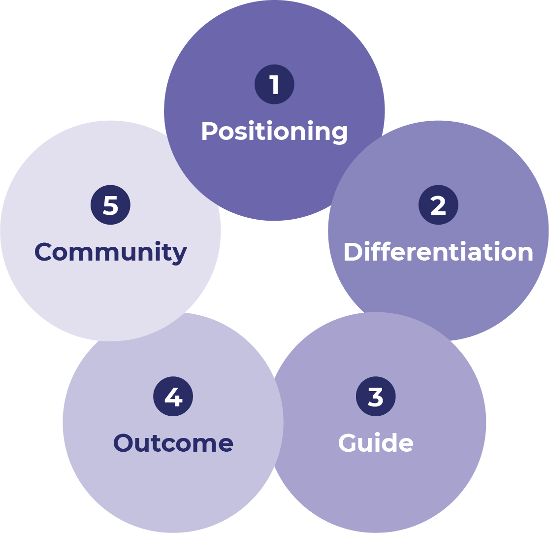 Every marketing message should fit one of these five pillars. Together, they help you build trust, create clarity, and grow your business.